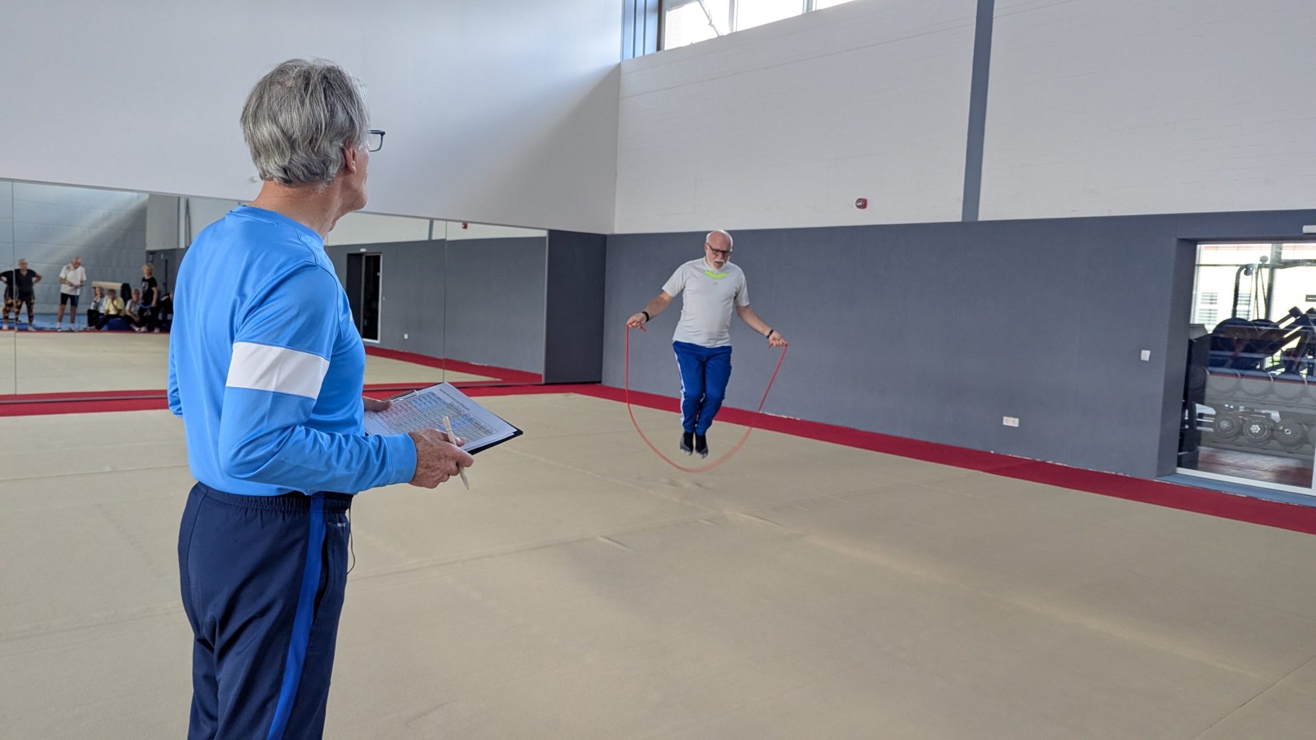 Nach einem gemeinsamen Frühstück ging es wieder in die Sporthalle. 11 weiterführende Tests zur Überprüfung der Kraft, Ausdauer, Schnelligkeit, Koordination und Gleichgewicht standen auf dem Programm.  Die Tests halfen dabei, individuelle Stärken und Trainingspotenziale zu erkennen – ein wertvoller Impuls für die persönliche Gesundheitsförderung.