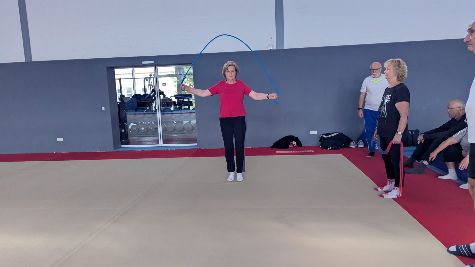 Nach dem gemeinsamen Mittagessen folgte der Koordination- und Gleichgewichtstest aus Seilspringen und   Balancieren auf dem Schwebebalken (bodennah).